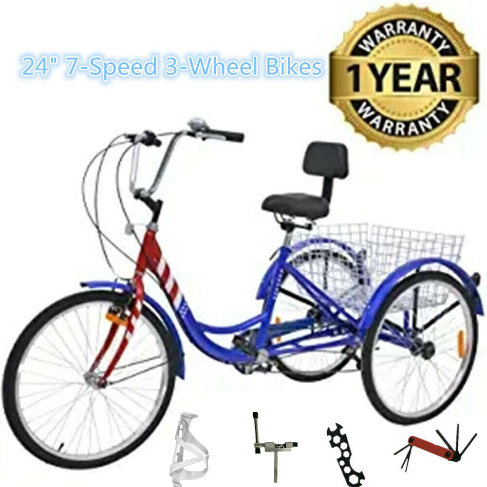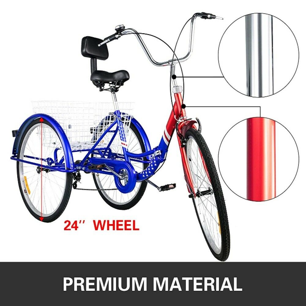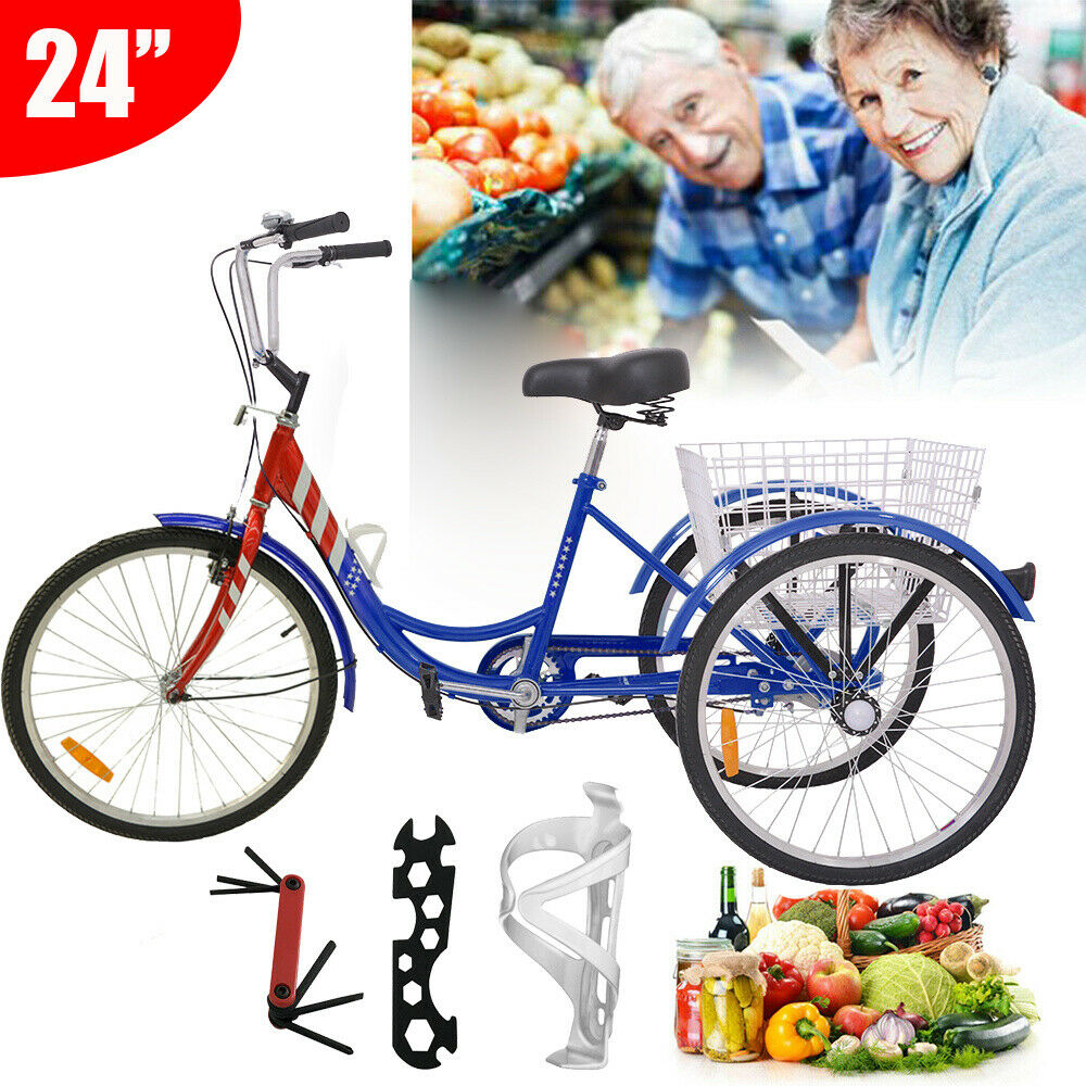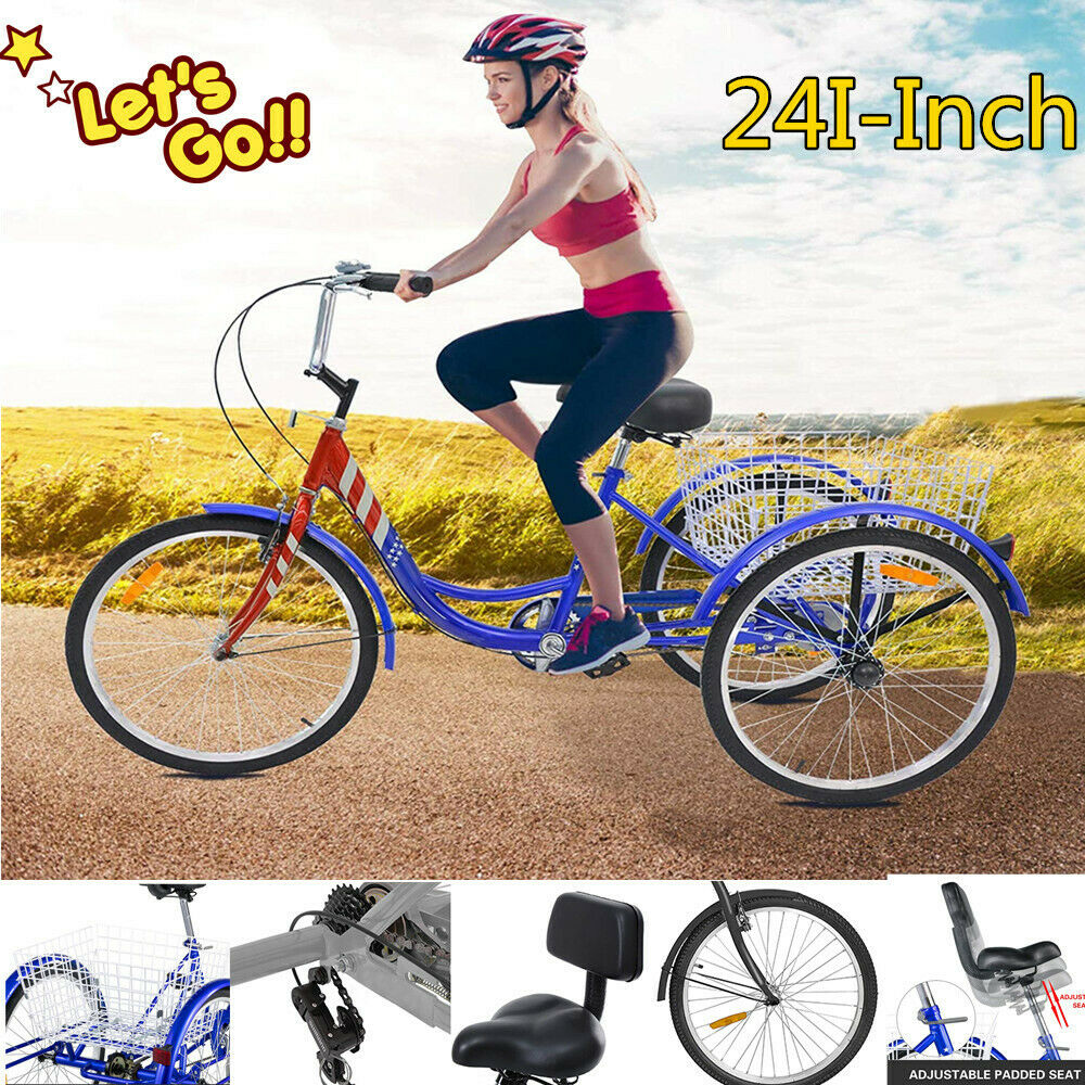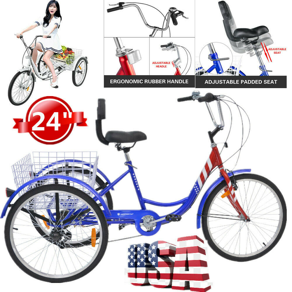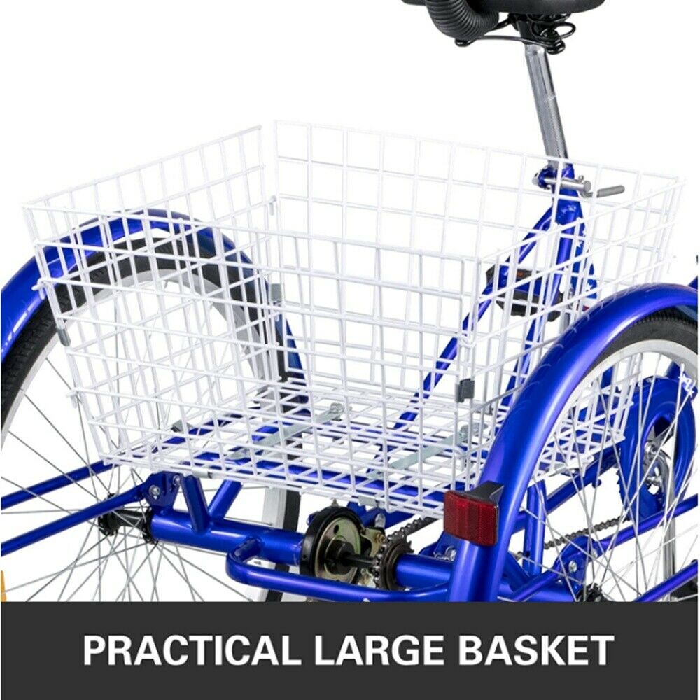 24 Inch Adult Tricycle Trike 3 Wheel Bike 6 Speed Shift + Shopping Basket