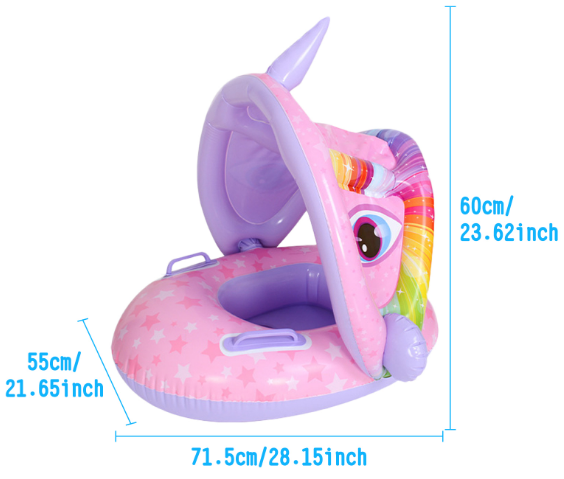 So we introduce you our swimming baby float that will give you not only the safety but also the aquatic fun that your baby deserves with its fun design, it does not contain toxic substances, it is safe for the skin and thanks to its spacious interior it is very comfortable. Another advantage? This baby float with canopy includes a sun protection cover to prevent your baby from direct sunlight.