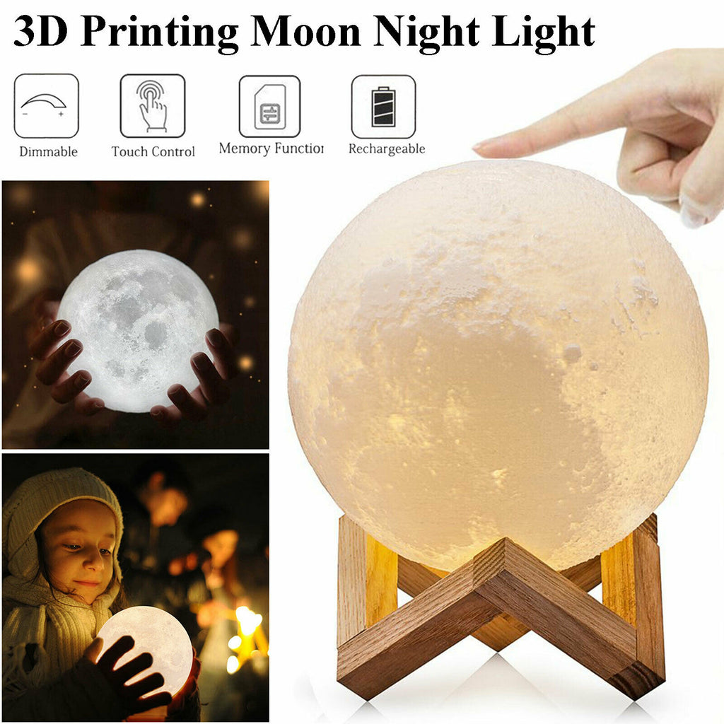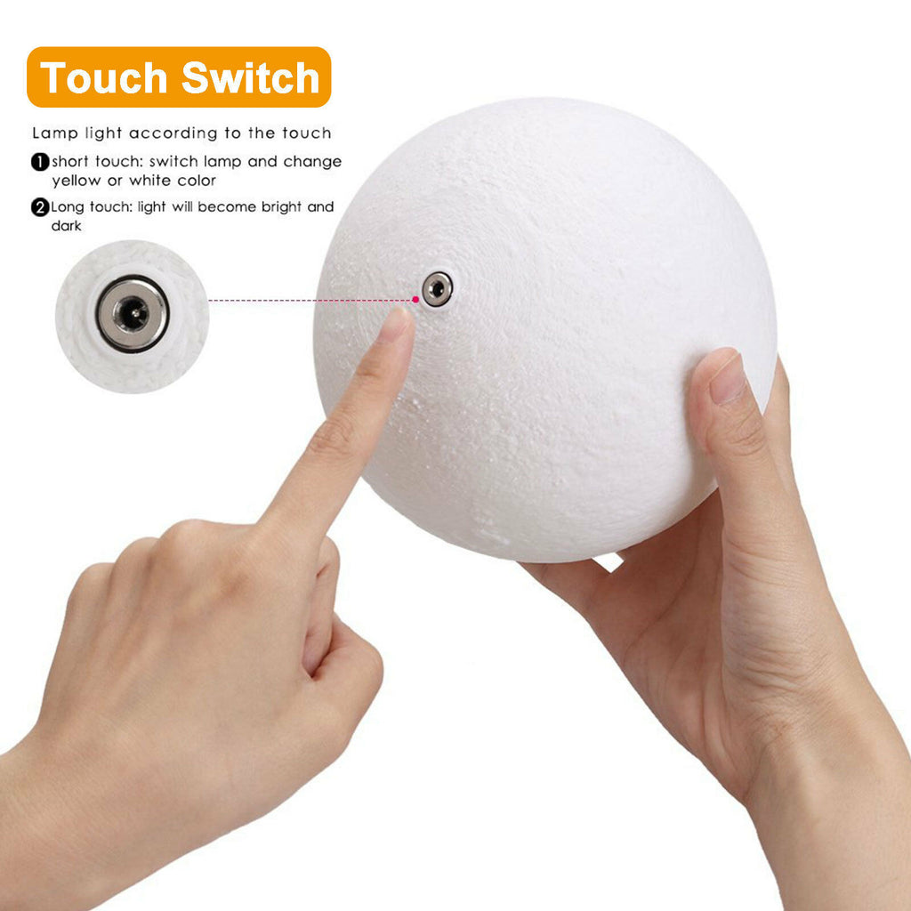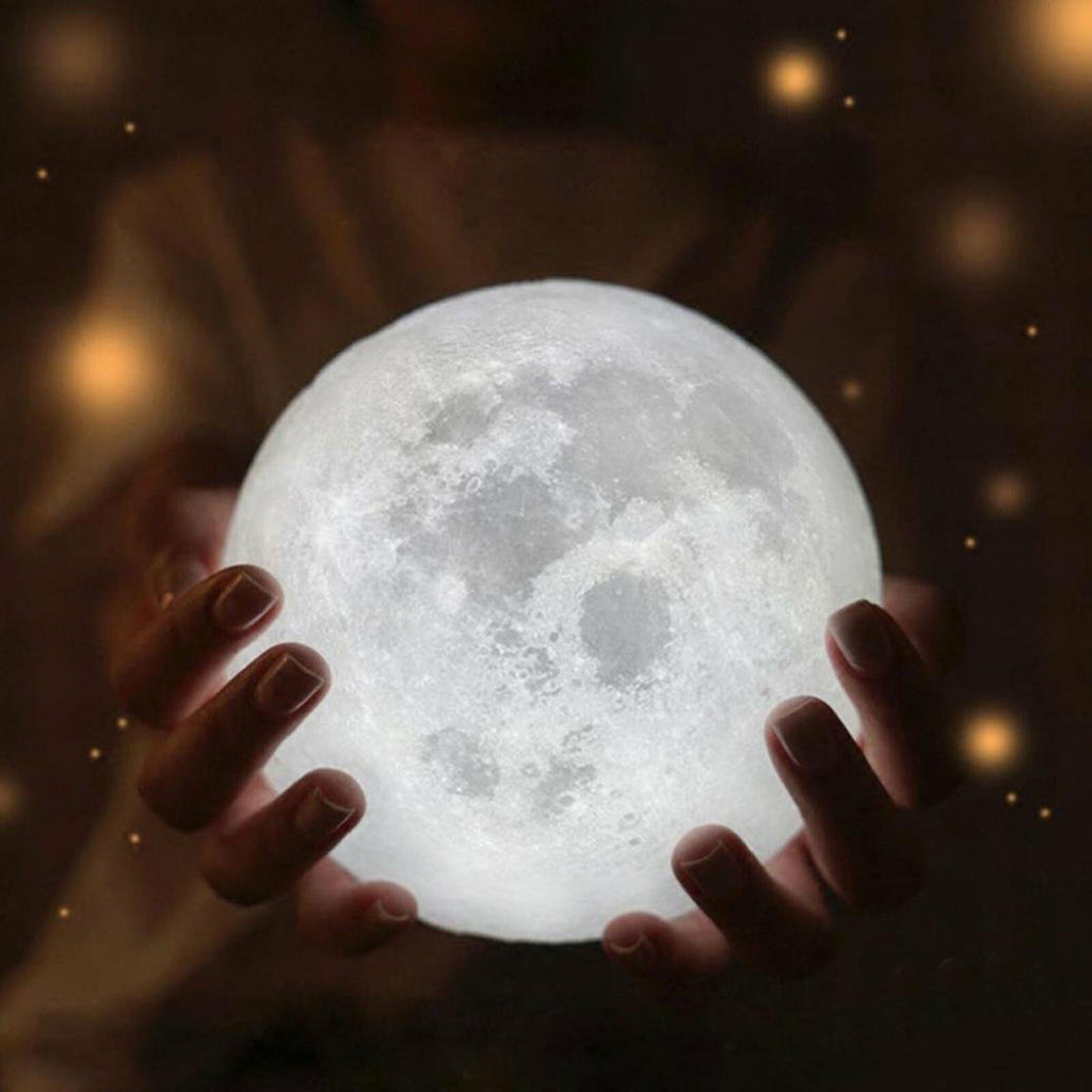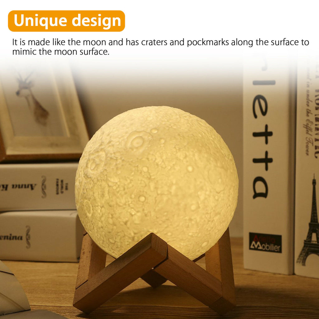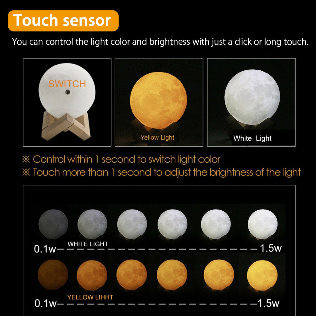 This moon lamp is 3D Printed so resembles a lot to the real moon, with craters, pockmarks, and arid and irregular shape. Although is not a perfect match to the moon, it does look a lot to the real thing! You have to see it for yourself. This moon lamp can also turn its color and brightness to adjust for every occasion. Use a brighter white light which is perfect for reading and working on your desk. And change it over time to a yellow and darker light, which is perfect for sleeping as it won't stimulate our eyes.