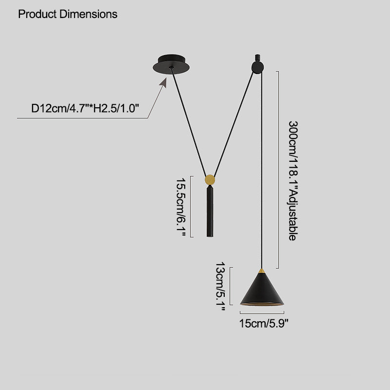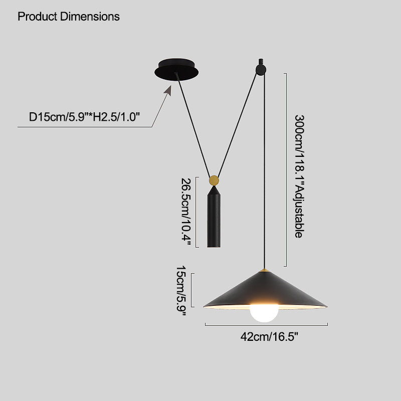 Cone Counterweight Pulley Swag Pendant Lamp - Adjustable Lighting Fixture for Home Decor & Dining Areas