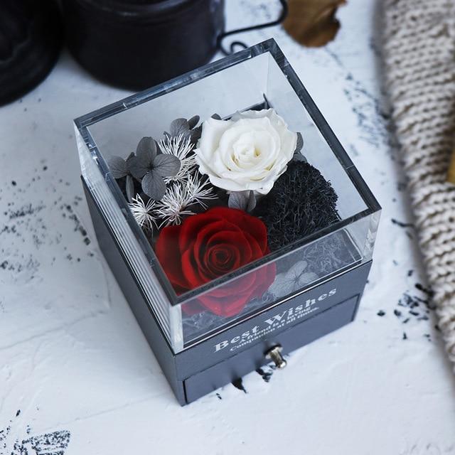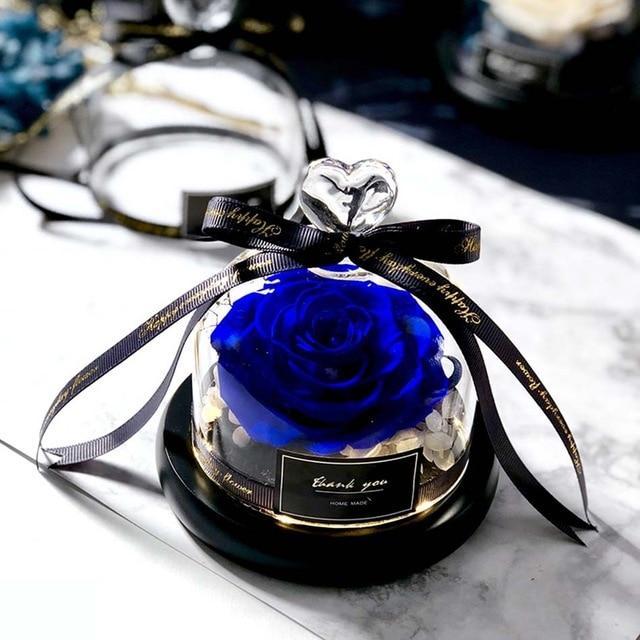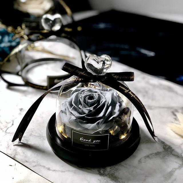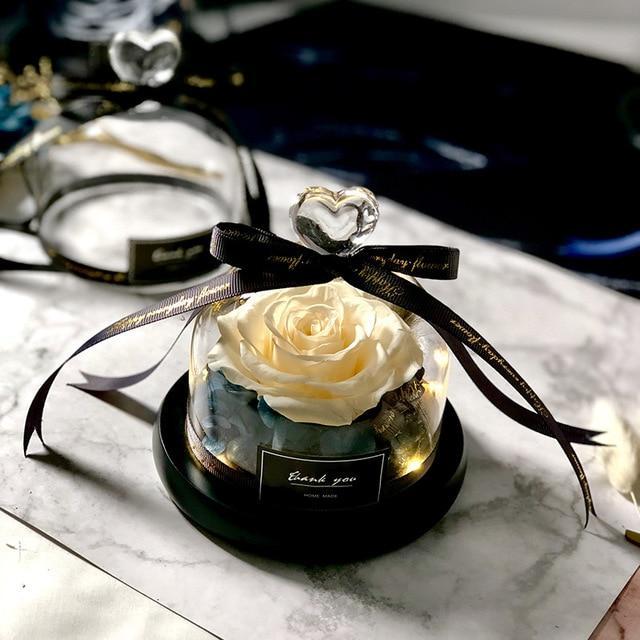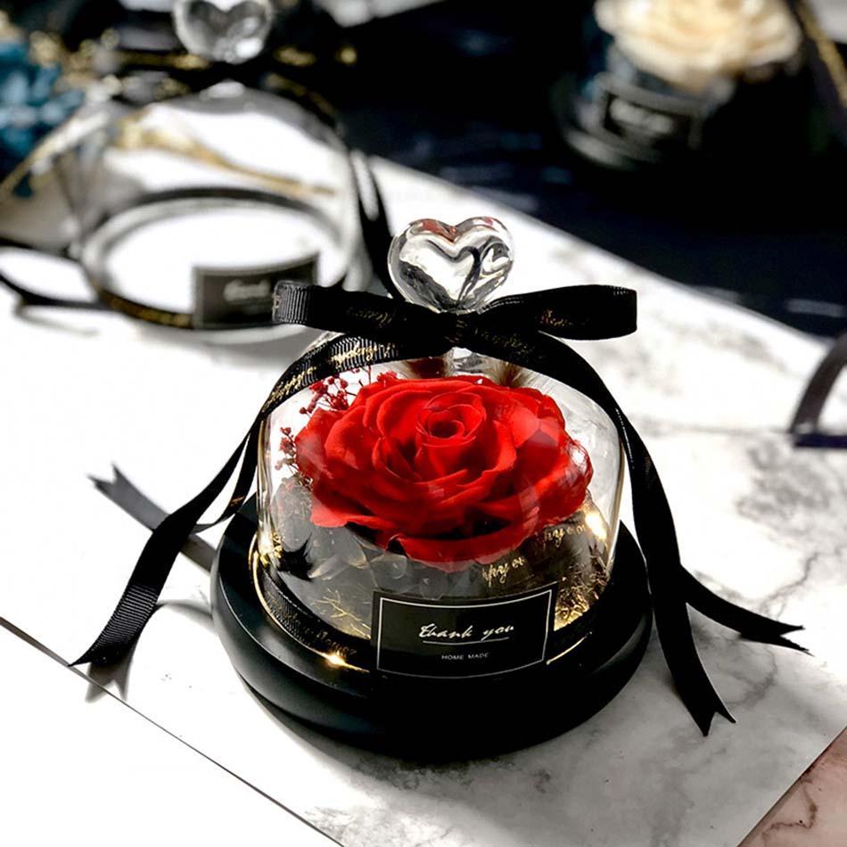 Exclusive Real Preserved Rose in Glass Dome with Lights Rose Valentines Day Gift - Balma Home