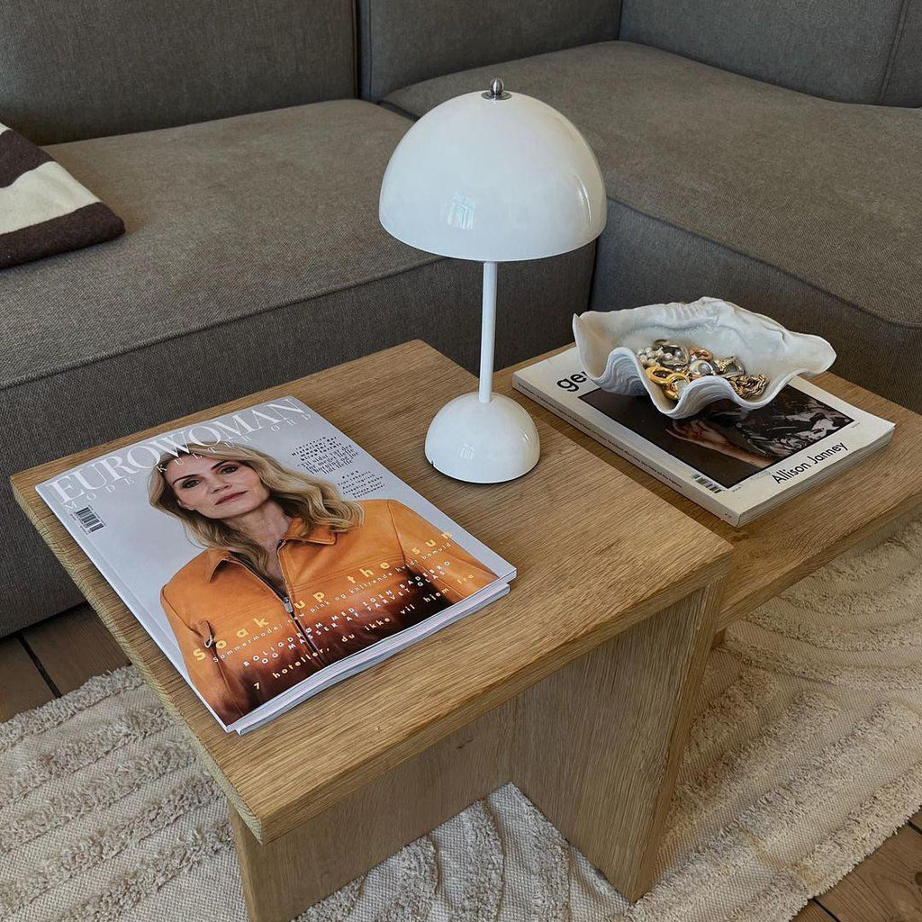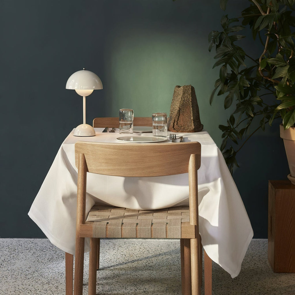 Introducing the Flowerpot Portable Table Lamp - the perfect combination of style and convenience. Enjoy the portability of this cordless lamp with its round base and lampshade. Use the included USB charging cable to take it anywhere. Ideal for creating a cozy ambiance both indoors and outdoors.