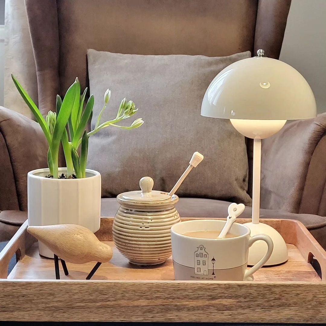 Flowerpot Portable Table Lamp with Adjustable Brightness for Bedroom, Living Room & Office Use