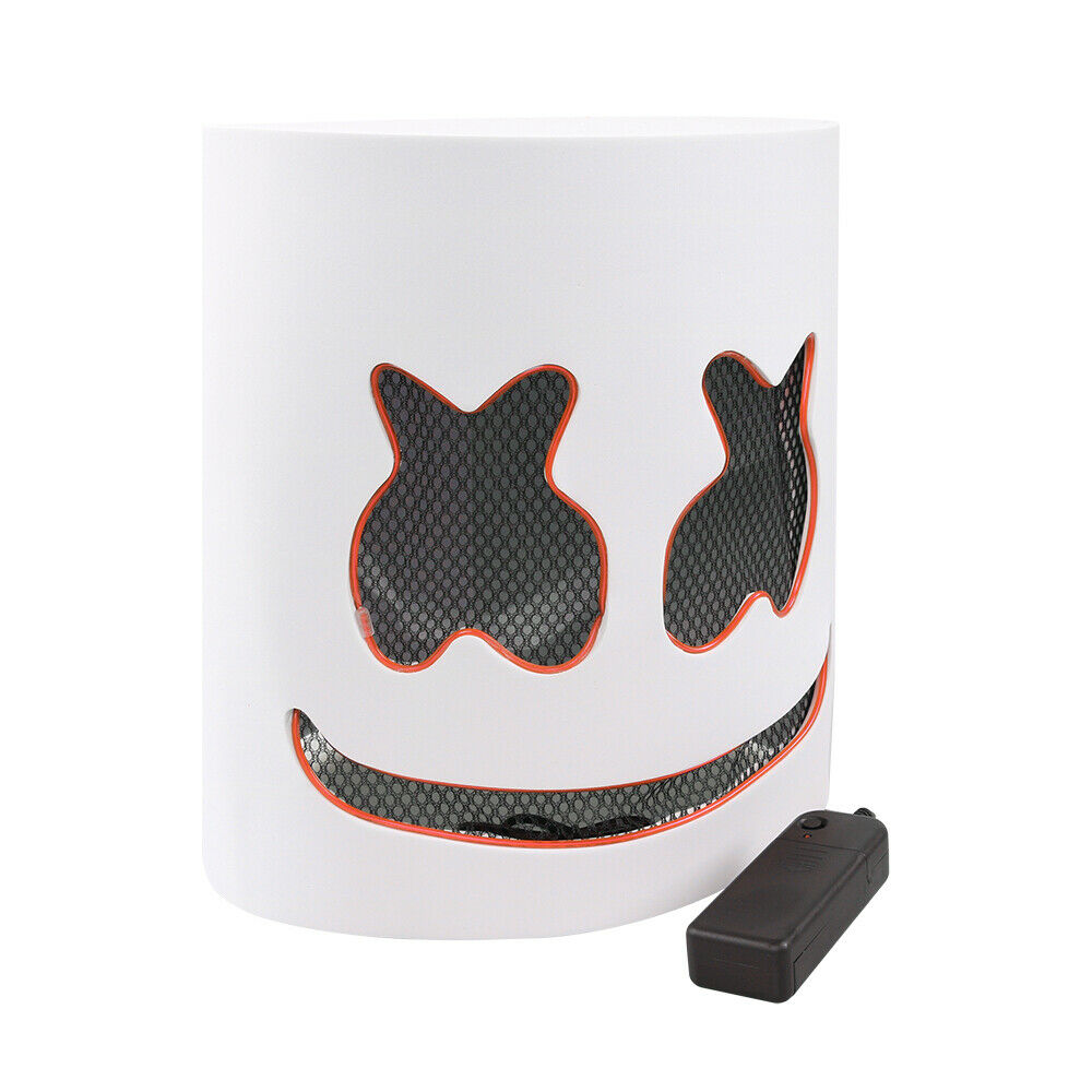 The marshmello costume mask has 4 lighting modes, constant light, slow flash, fast flash, and off, powered by 3 AA batteries, so you can give a whole light show. The electroluminescent mechanism of our product has a cold light source, so it does not generate heat during use or strong flashes that cause eye tension and headaches, without UV radiation and adverse effects on the body. This marshmallow halloween costume is perfect for any occasion like Halloween, parties, carnival parties, discos, clubs, birthdays, festivals, and much more.