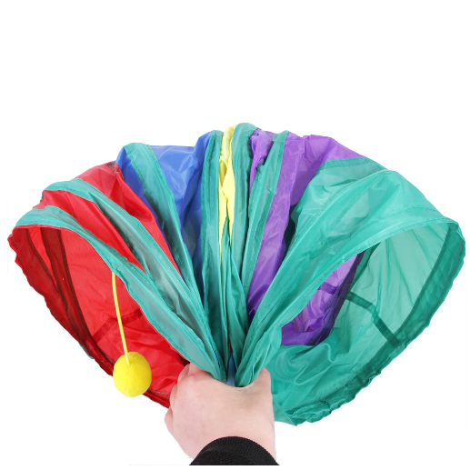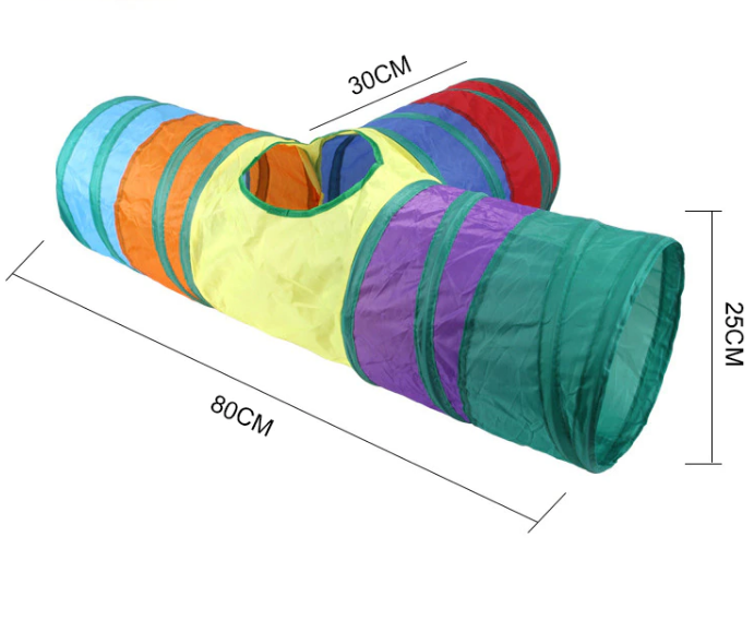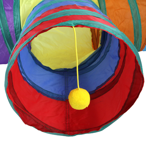 - Inside hang small balls that swing left and right to attract cats to the tunnel.