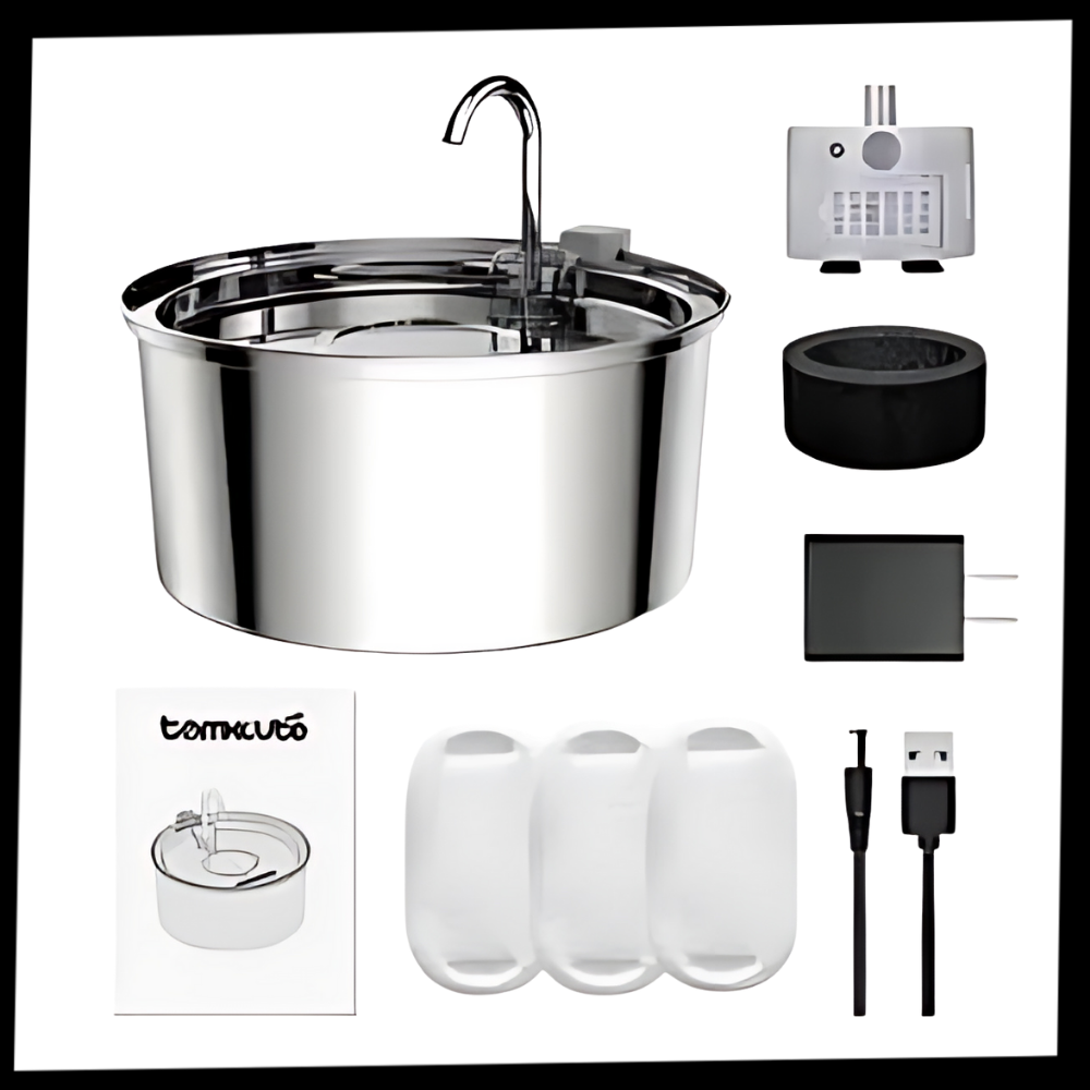 The Automatic Cat Water Fountain is a premium stainless steel cat fountain designed to keep your cat healthy and happy by encouraging more water intake. Combining functionality, durability, and sleek design, it offers a reliable and easy-to-maintain hydration solution for discerning cat owners.