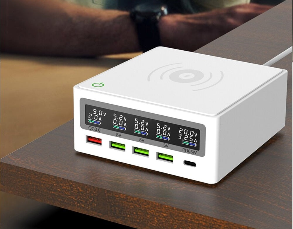 This portable laptop charger is everyone's favorite because it offers you up to 5 charging ports so you can connect different devices at the same time, and it even has a special wireless charging system on top so you can charge your phone without having to connect it and without the annoying cables of conventional chargers. Unlike other products, ours has multiple built-in overcharges and overheating protections to ensure the safest and most efficient charging, in addition, this portable charger for computer will detect when your device is fully charged and will stop supplying power once your device has a full charge.