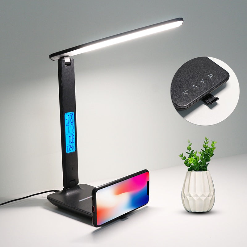 QI Wireless Charging LED USB Desk Lamp Bedside Lamp with USB Alarm Clock Lamp with USB Port