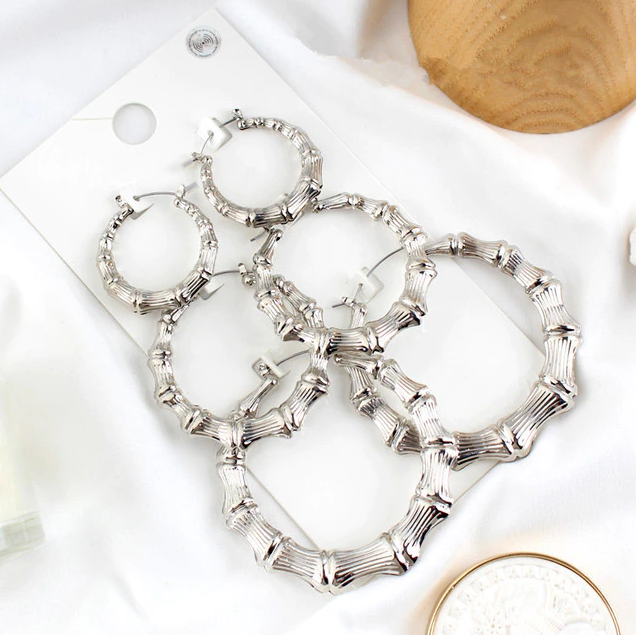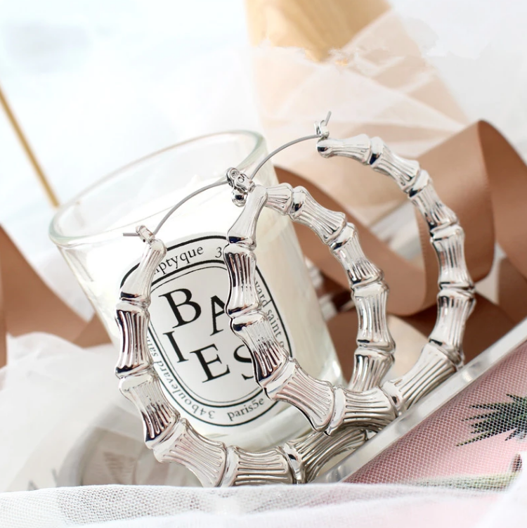 Silver/Gold Bamboo Earrings Big Circle For Women Bamboo Hoops Earrings Hip Hop Celebrity