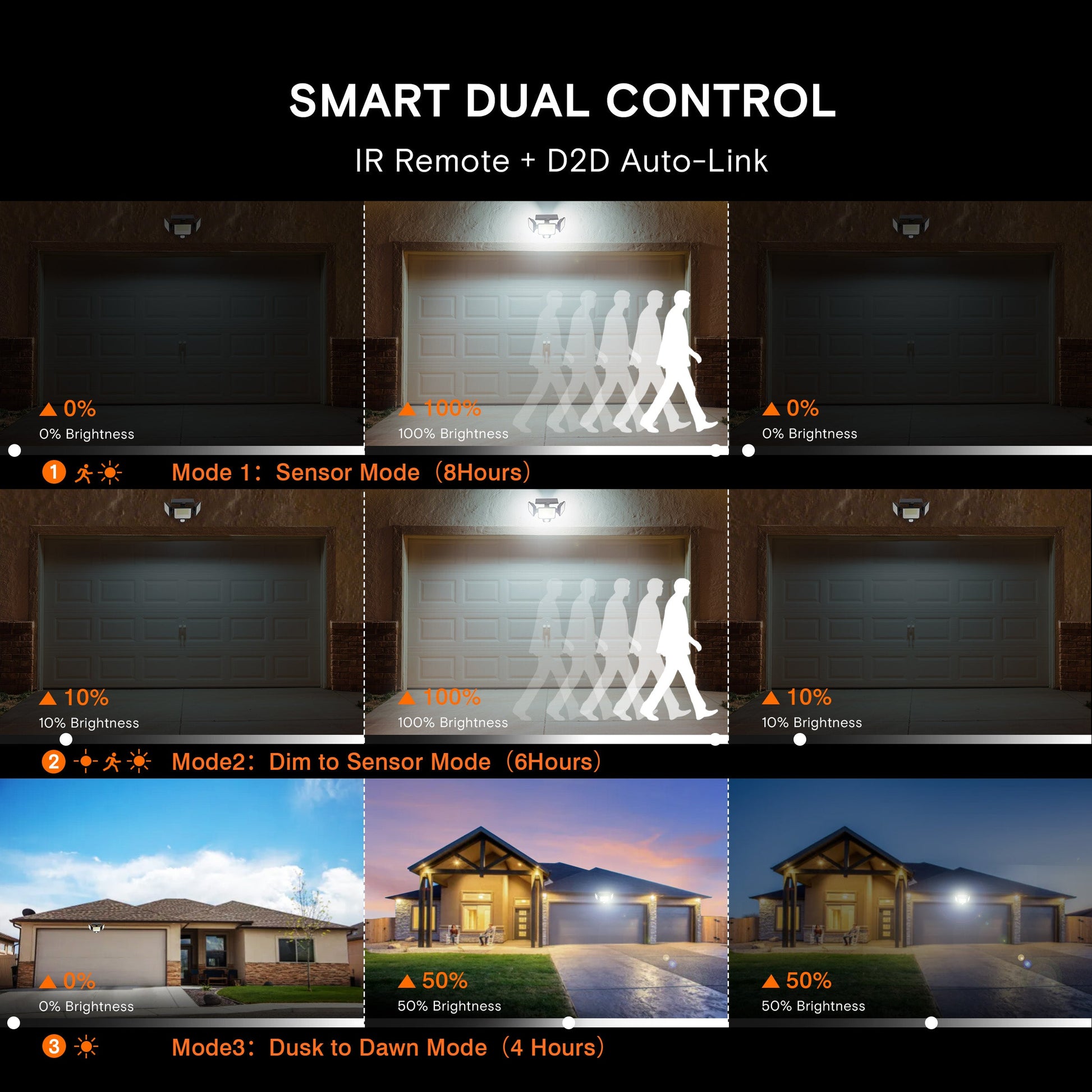 This innovative solar motion sensor light features a convenient remote control and three customizable lighting modes to suit your needs: