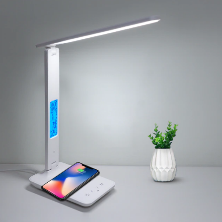 Table Lamp With Wireless Charger 10W With Calendar Temperature Alarm Clock Charging Lamp