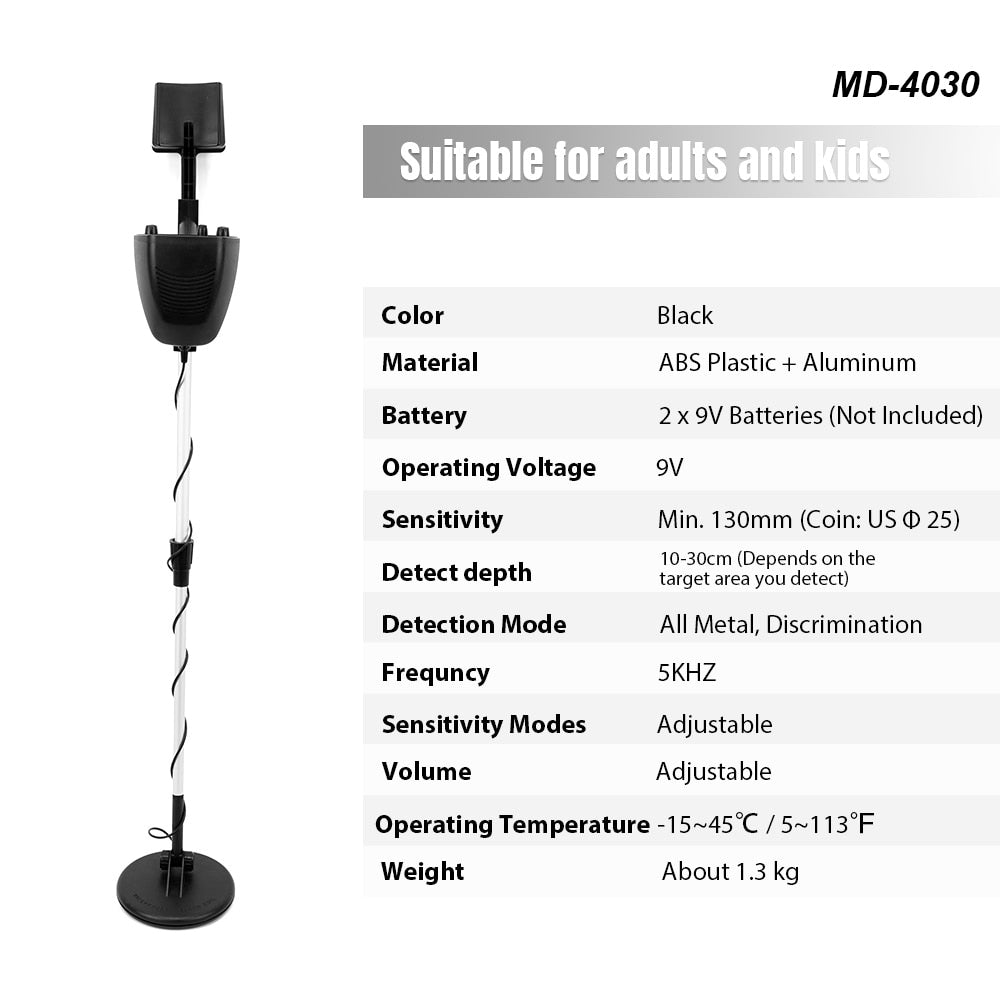 Sensitivity: MD-4030( 130mm Test Coin: US Φ 25) MD-4030P(150mm Test Coin: US Φ 25)