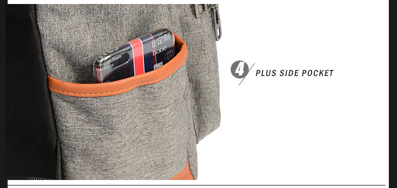 It has a roomy main pocket with laptop compartment, a front zipper pockets to make the accessories easily accessible, a internal zipper pocket for cards, cellphone or other valued stuffs, the two side pockets may be not loose for big water bottle, we design a taut mouth for safe storage