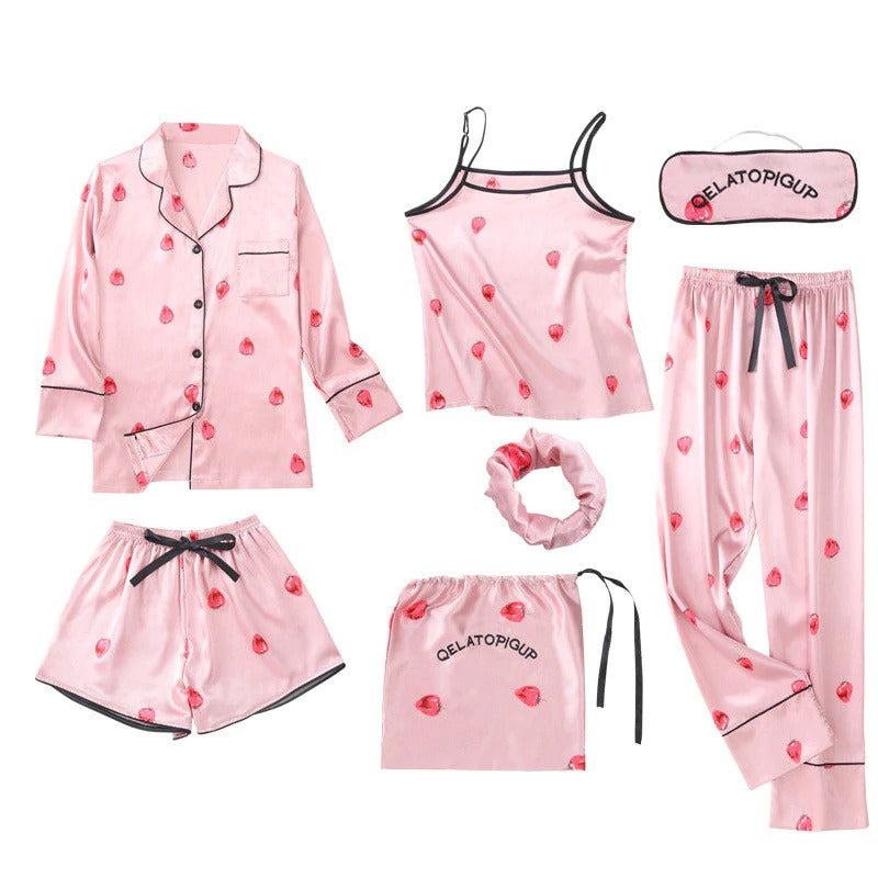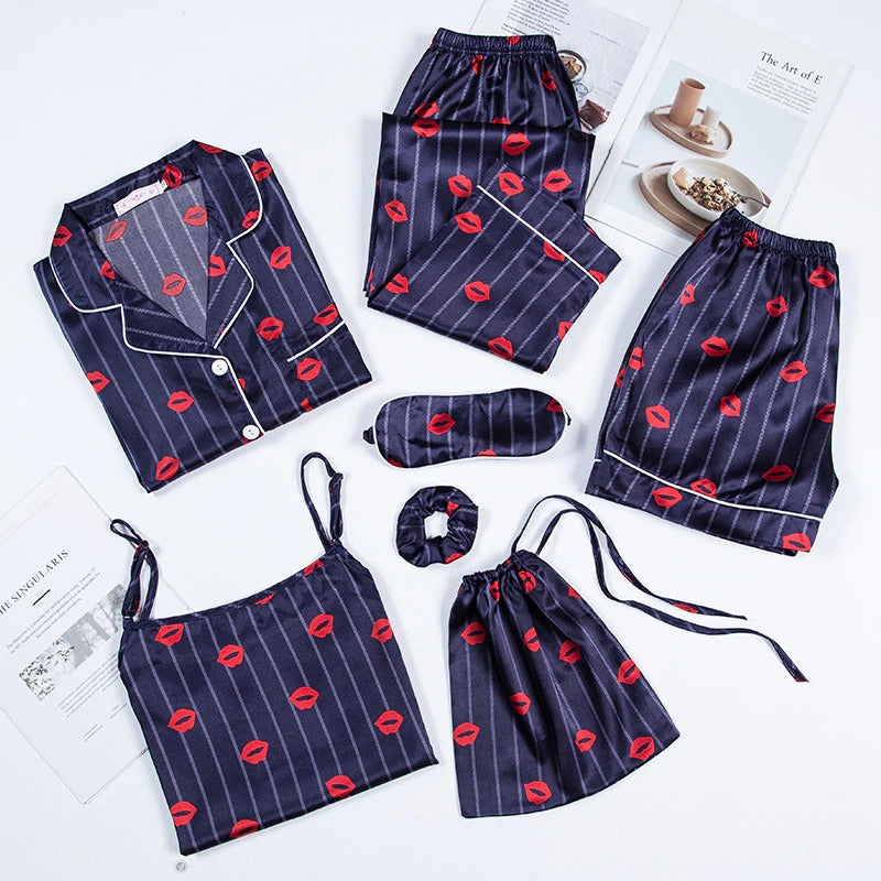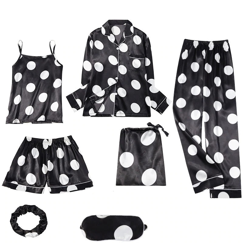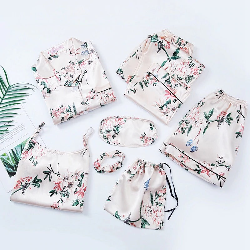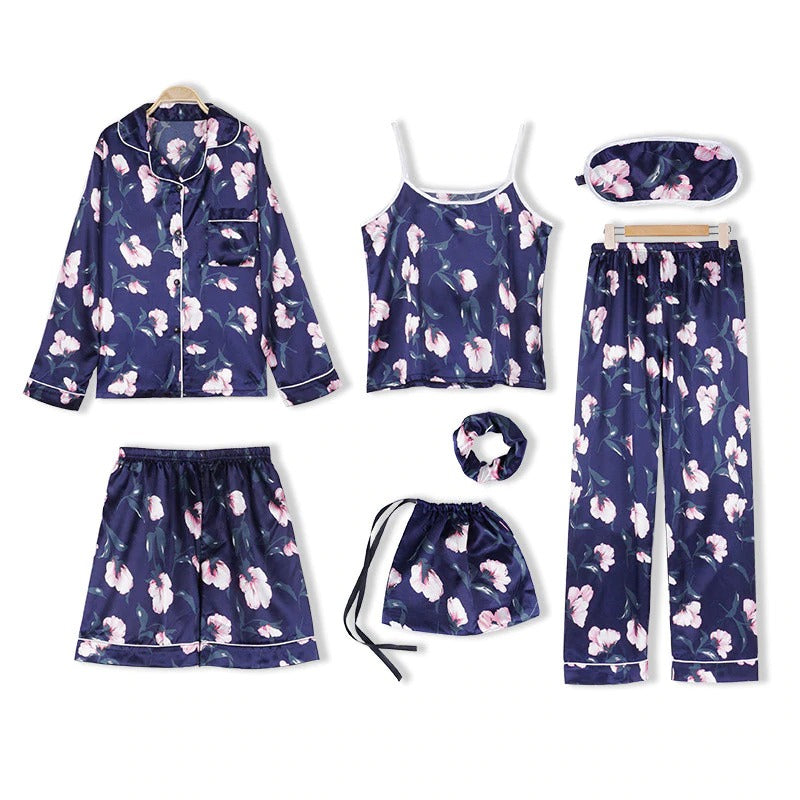 Women 7 Pieces Pajamas Sets Faux Silk Pajama Sets For Women
